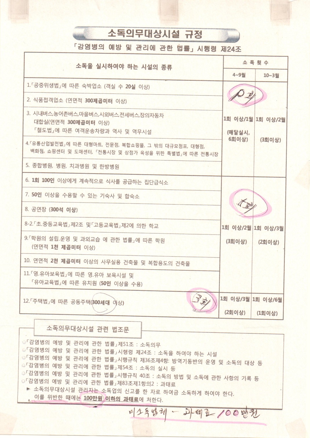 소독의무대상시설규정